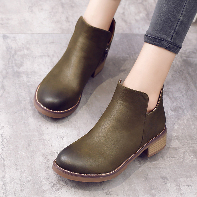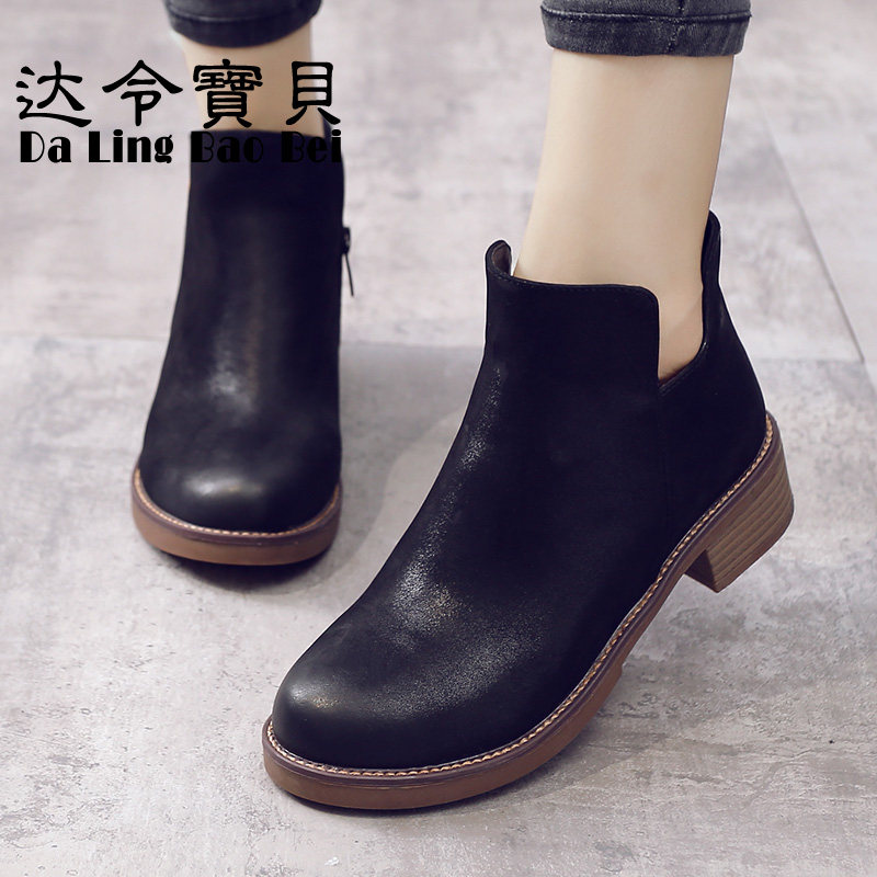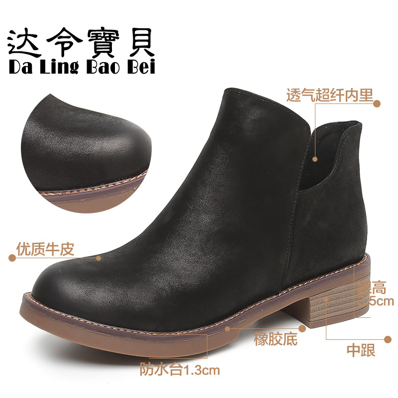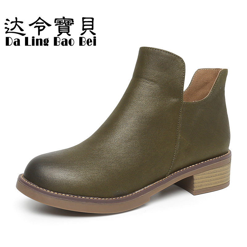 2026春秋新款短靴女低跟真皮马丁靴英伦风女鞋及踝靴粗跟女单靴子 - 达令宝贝旗舰店