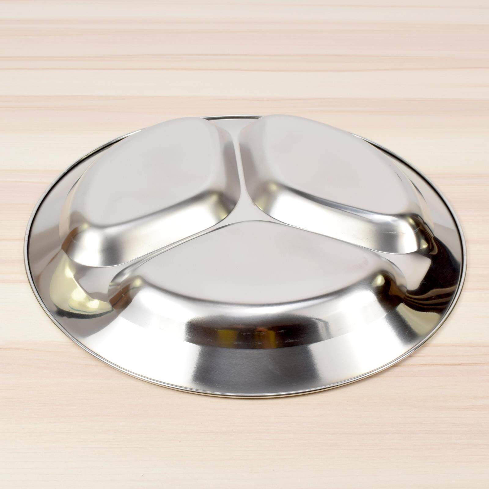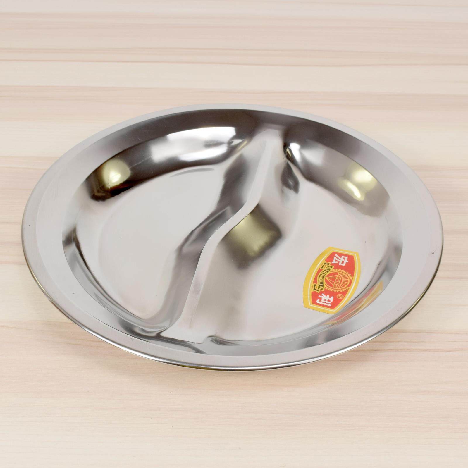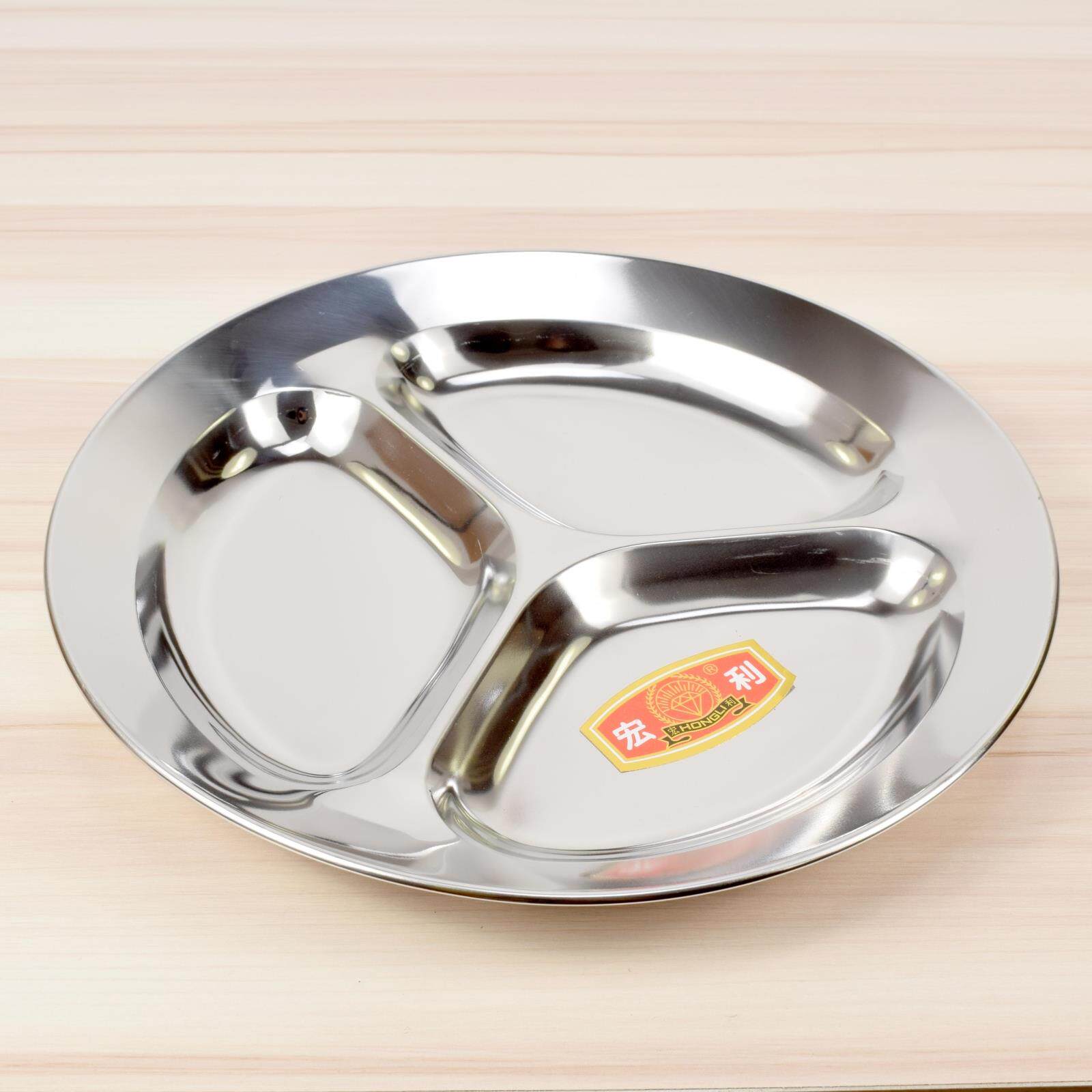 快餐盘分格餐盘 不锈钢盘子 二三格儿童学生成人食堂饭堂圆型饭盘 - 四李豆厨具