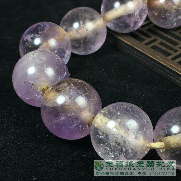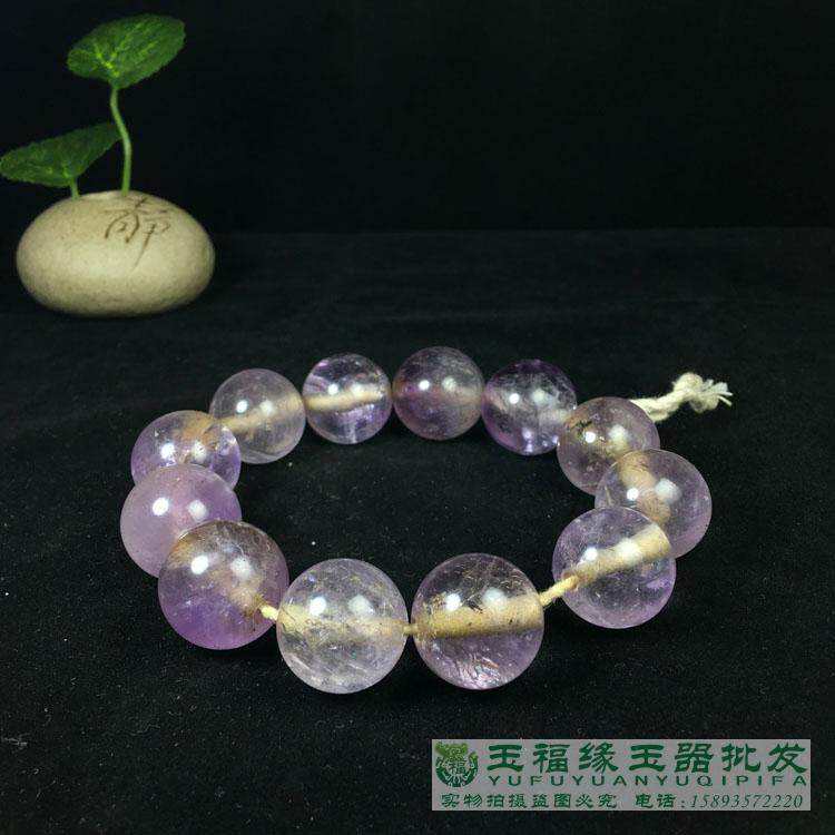 古玩玉石紫水晶老珠子圆珠仿古真水晶大珠念珠配饰明老水晶串 - 玉福缘珠宝玉器批发