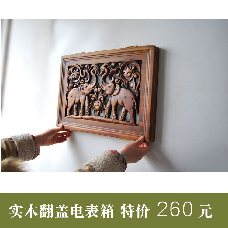 特惠实木雕花电表箱装饰画餐厅配电箱开关电闸遮挡盒泰式中式壁饰 - 银腾斋商城的小店49