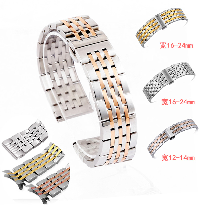 表带钢带男表链不锈钢手表带男士弧口精钢女金属配件蝴蝶扣通用 - 诚信 精钢表带