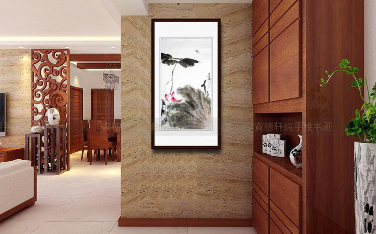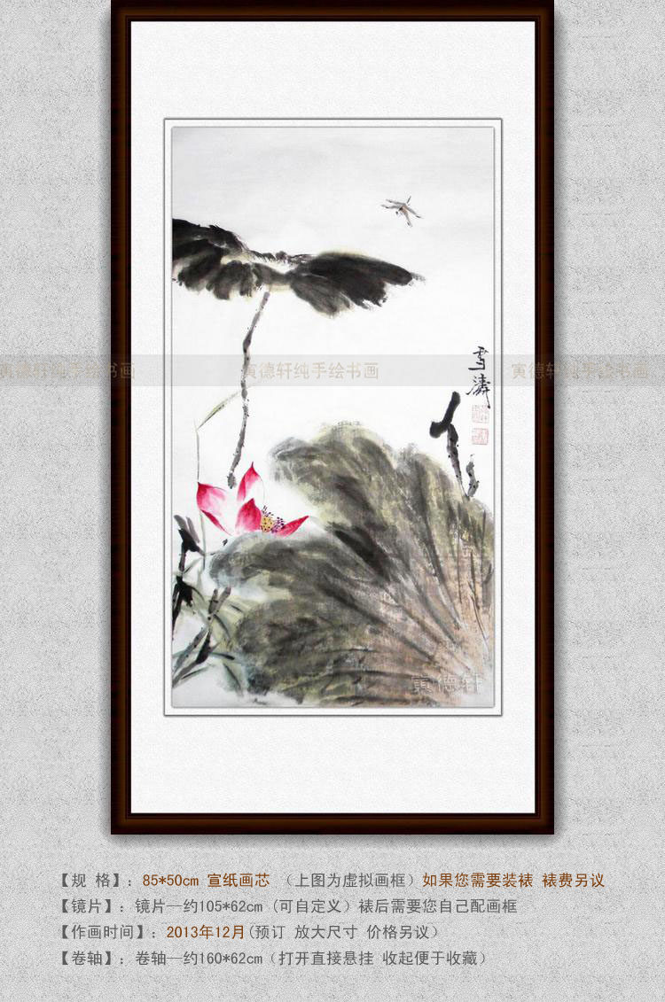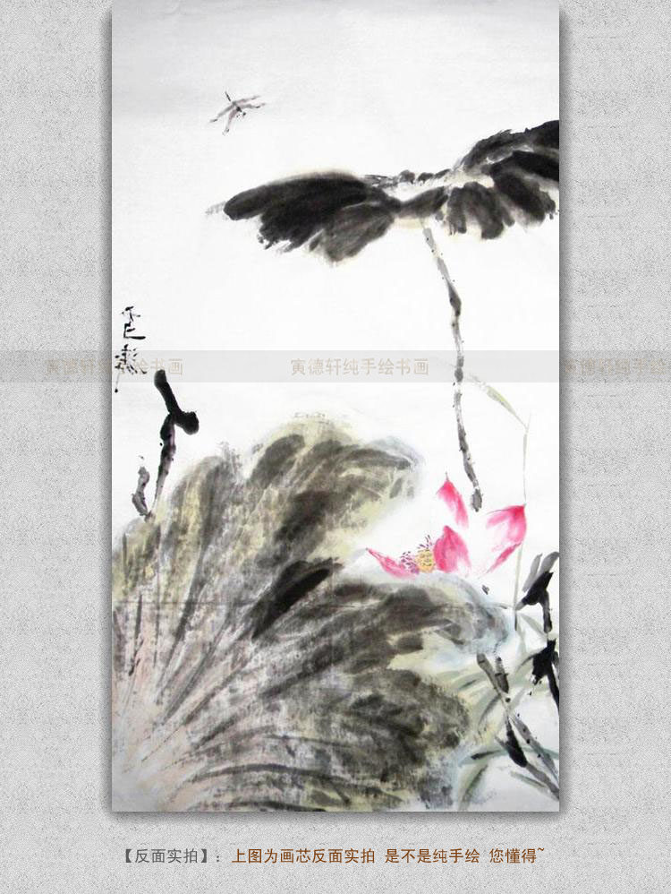 纯手绘国画仿名人字画名家书画王雪涛条幅荷花蜻蜓图花鸟画XT52 - 寅德轩书画手绘