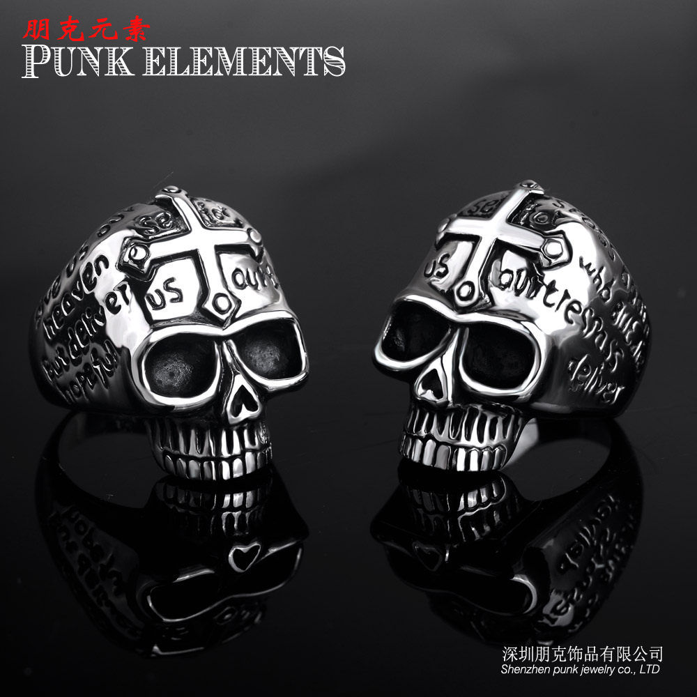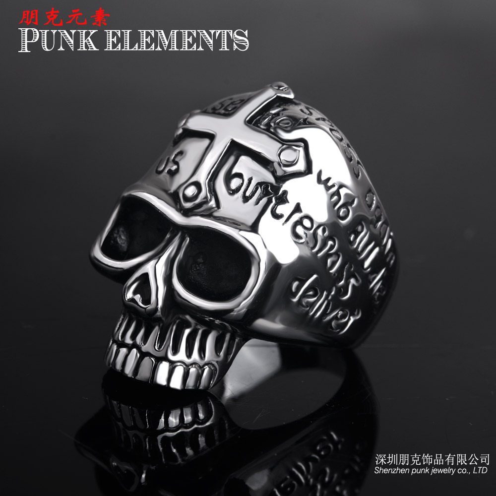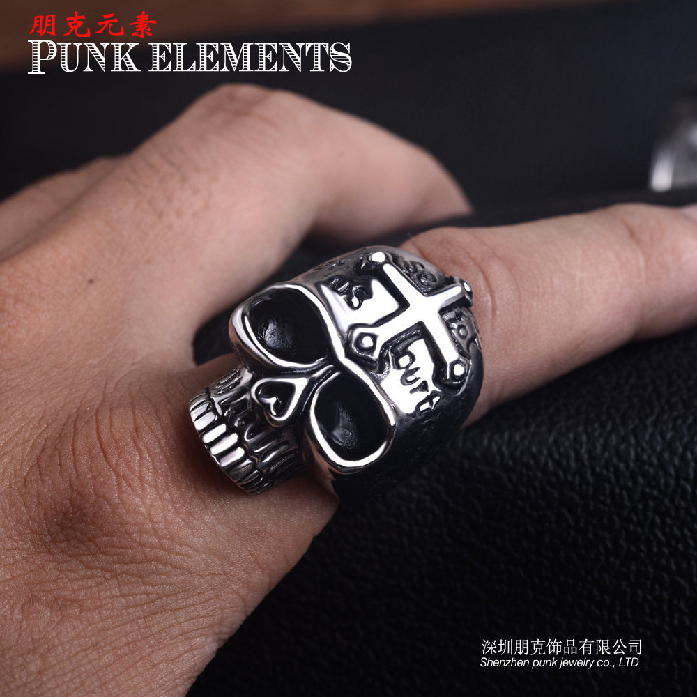 朋克个性骷髅头戒指霸气潮男士钛钢摇滚指环日韩版十字架单身戒子 - 朋克饰品官方店