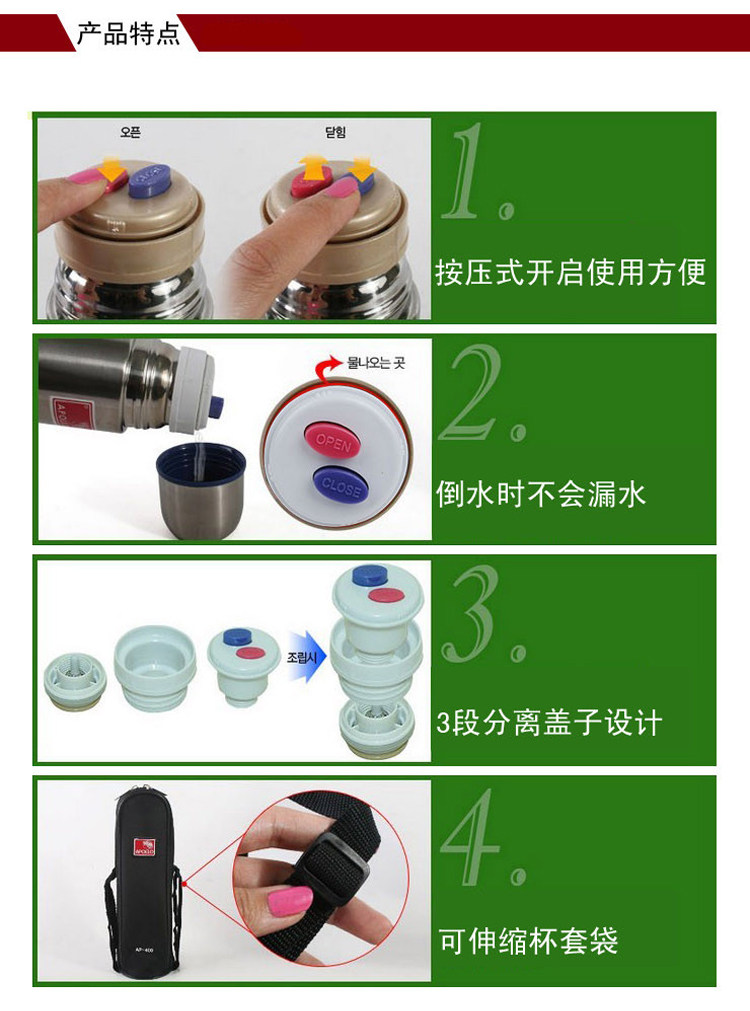 韩国进口APOLLO阿波罗保温杯不锈钢热水壶保暖瓶户外保冷冰水壶大 - 有E家精品馆