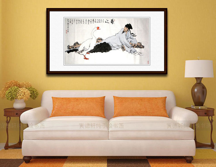 纯手绘国画名人字画仿范曾四尺横幅人物挂画心王羲之戏鹅图大白鹅 - 寅德轩书画手绘