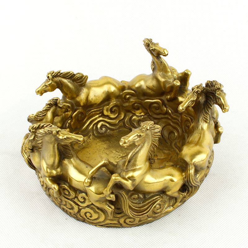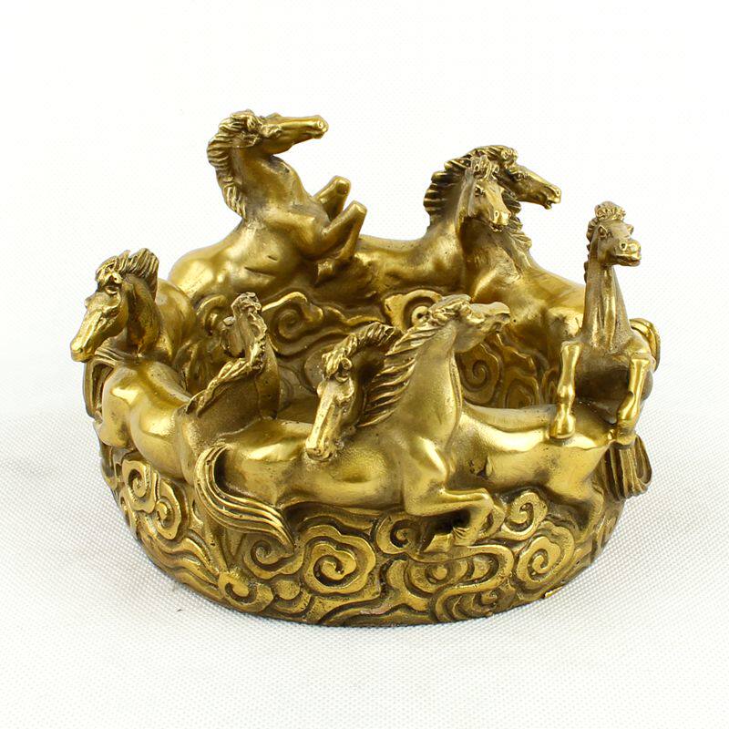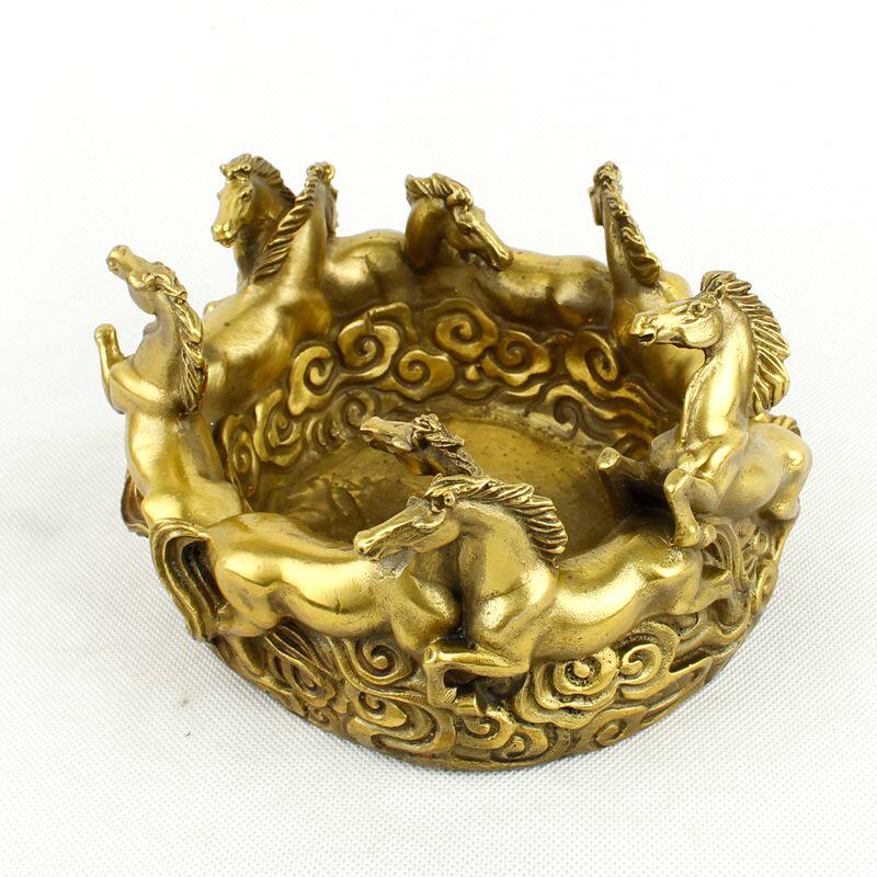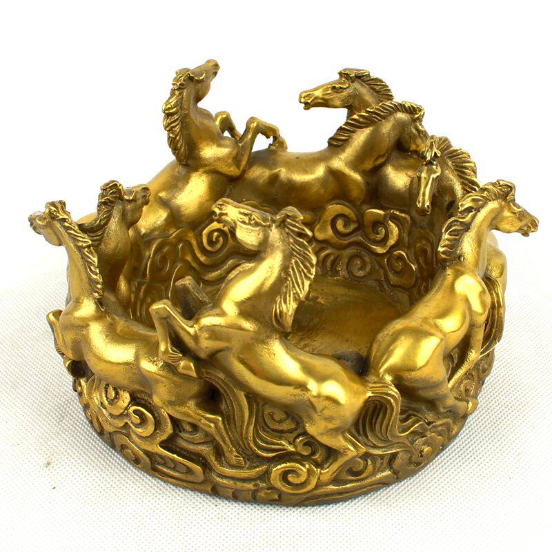 包邮 开业纯铜烟灰缸 铜八马烟缸 铜烟缸 八骏马 招财摆件 - 泰山风水堂