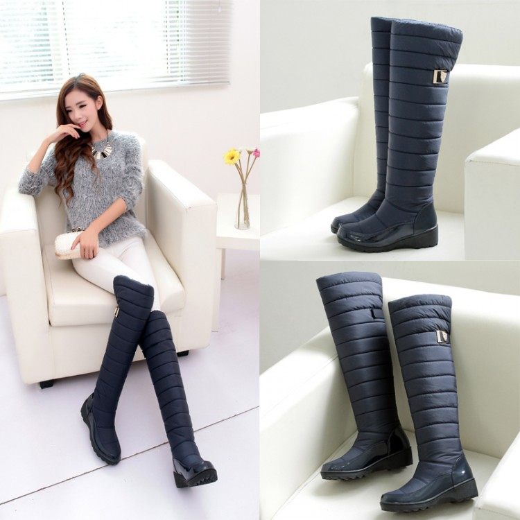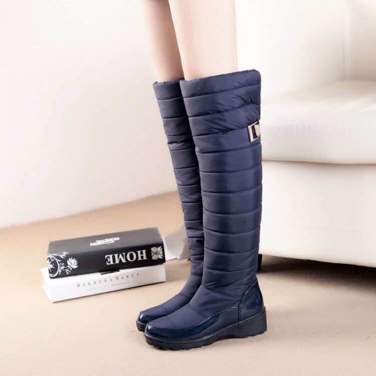 2025季防水羽绒棉过膝雪地靴女长筒棉靴平底套筒加厚毛保暖大码靴 - 香香家雪地靴网靴厂店