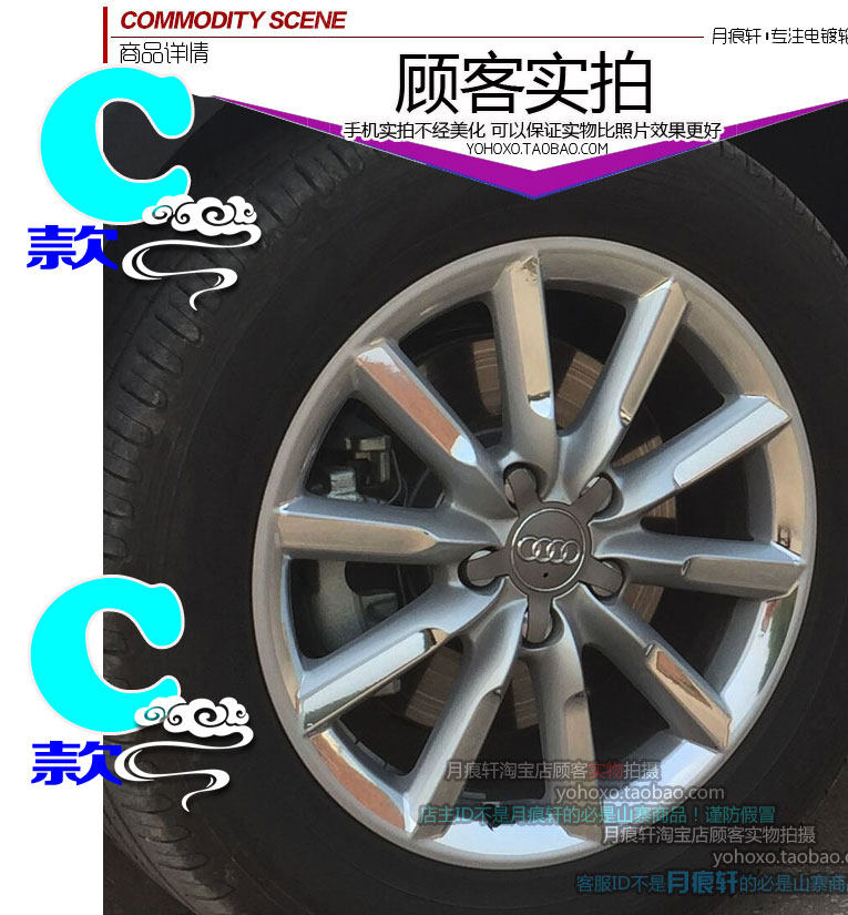 用于奥迪Q3电镀轮毂贴纸改装饰碳纤维车贴膜反光划痕修复轮圈镀铬 - 月痕轩
