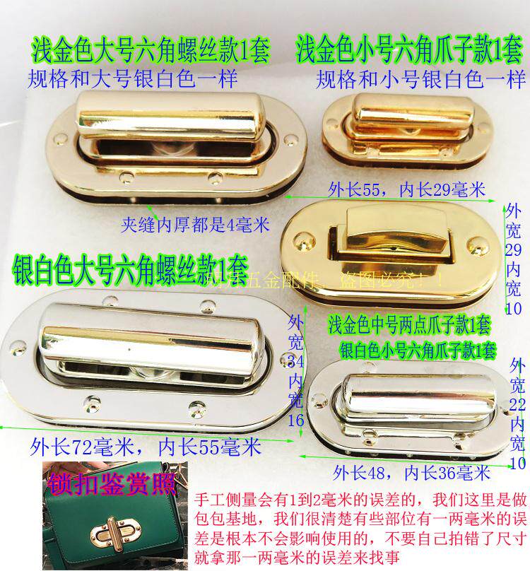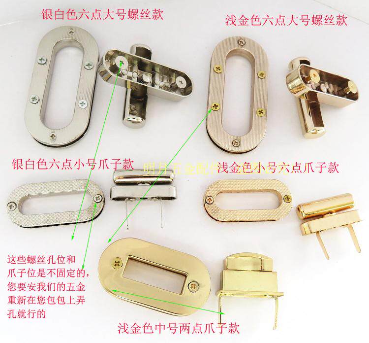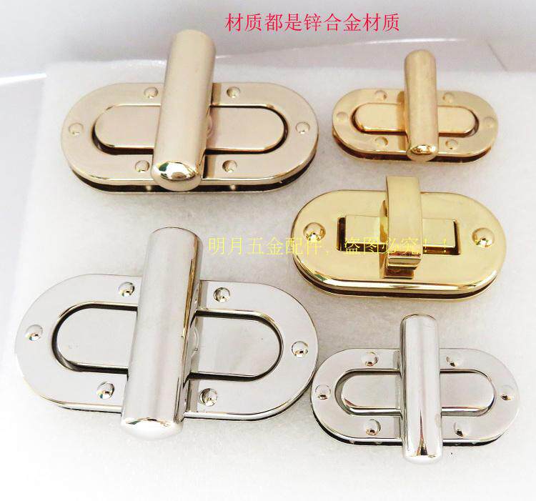 女包锁扣拎环银白金色蛋形长椭圆拧锁十字旋转扣子盖头锁五金配件 - 皮具五金配件店