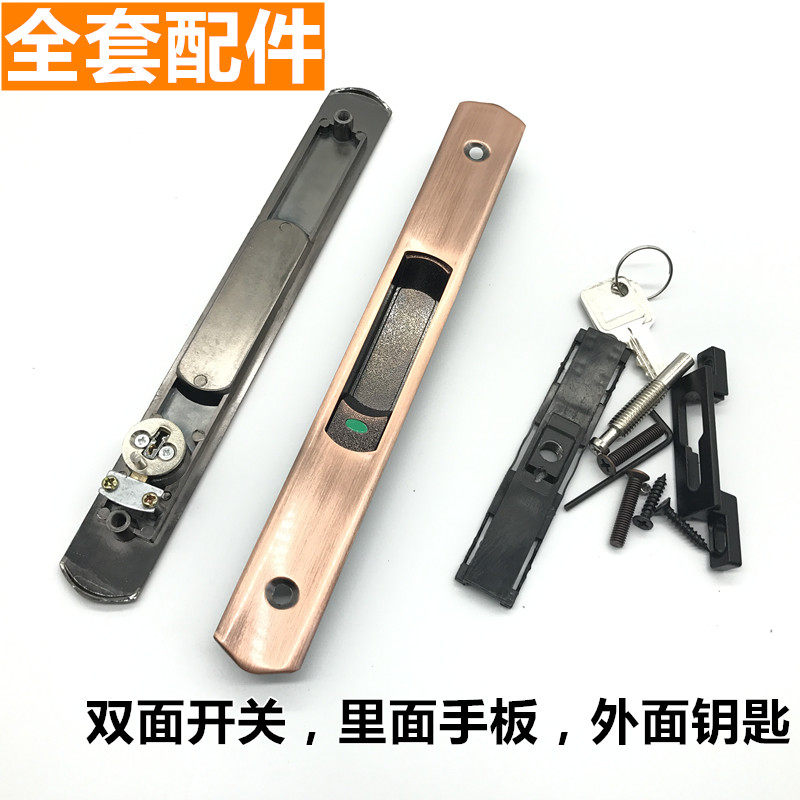 移门小凹弧移门锁钛镁铝合金钩锁客厅卫生间移门锁双带钥匙铜锁芯 - 凌腾家居专营店