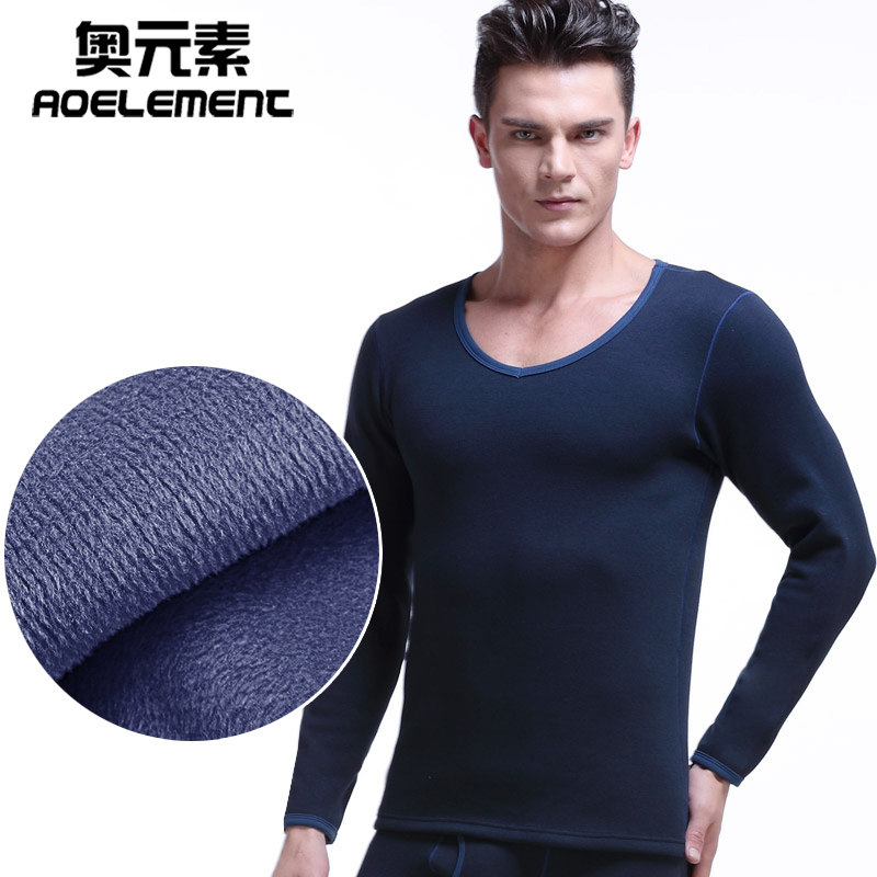 秋冬季男士保暖内衣套装防寒低领秋衣秋裤紧身加厚加绒V领棉毛衫 - 奥元素内衣店