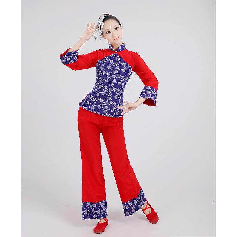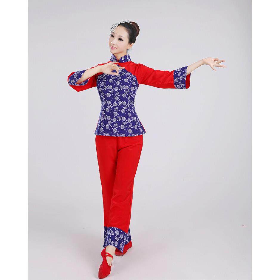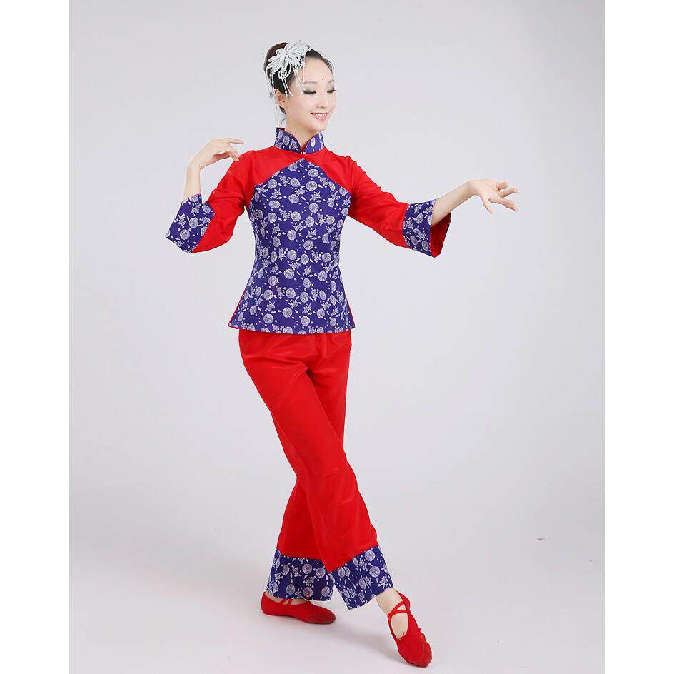 新款秧歌舞蹈演出服装民族装村姑表演腰鼓扇子舞蹈服老年中女包邮 - 演出服精选丶