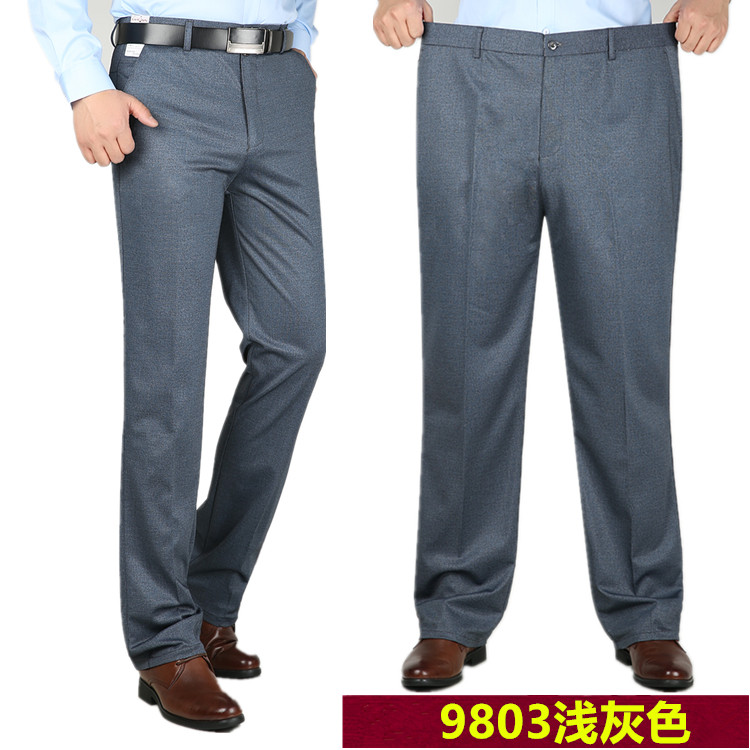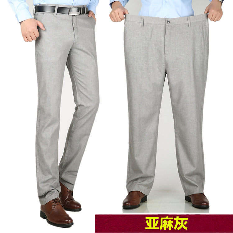 高弹力薄款加肥加大码男裤 高腰深裆宽松肥佬长裤 中老年休闲裤子