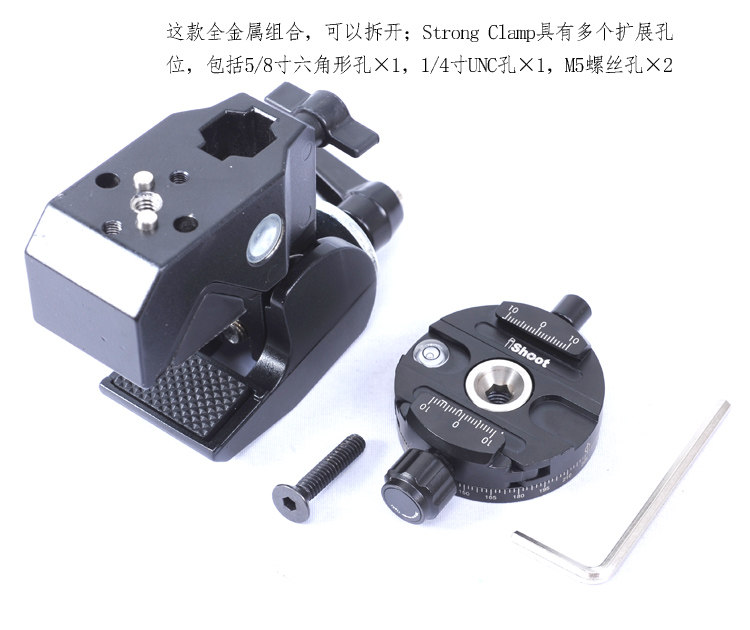 Strong Clamp+QJ58金属全景360云台大力夹户外助手承载3kg便携 - 爱色摄影器材有限公司