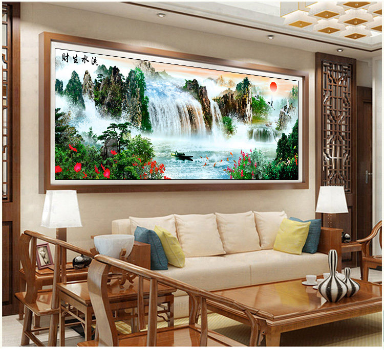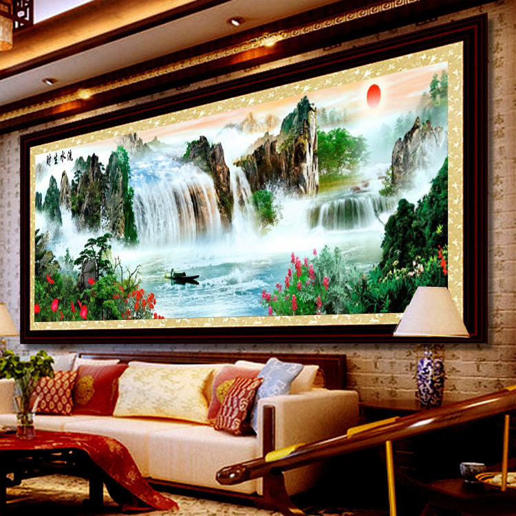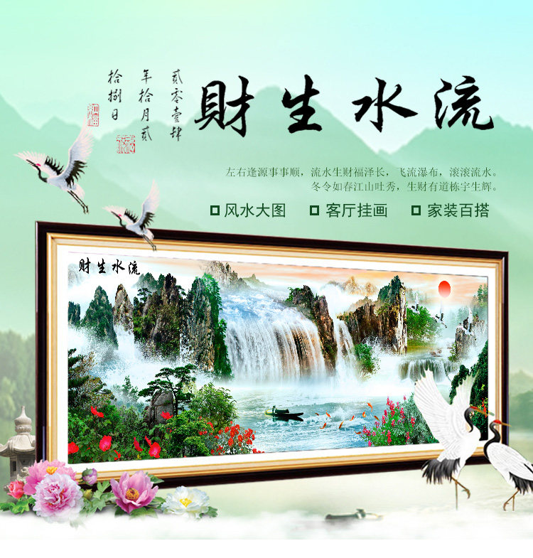 KS色系新款钻石画流水生财源远流长客厅大幅风景全点满钻石绣 - 拾光绣坊企业店企业店