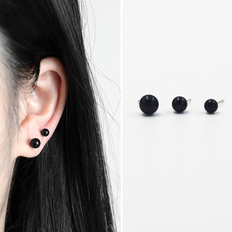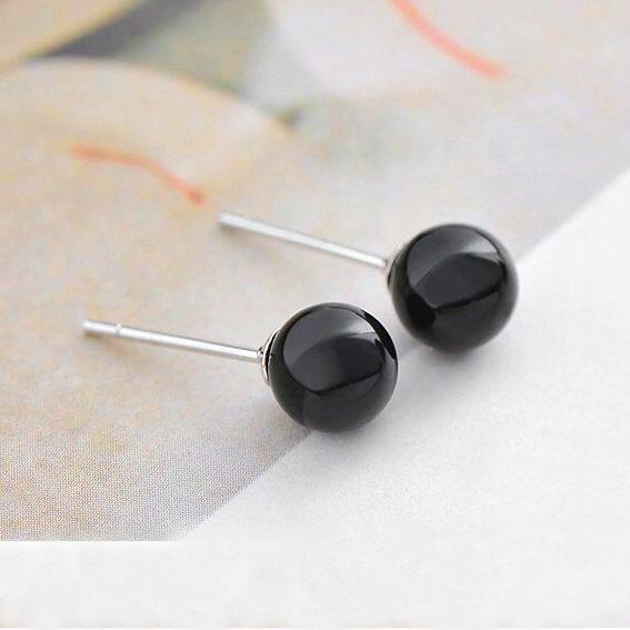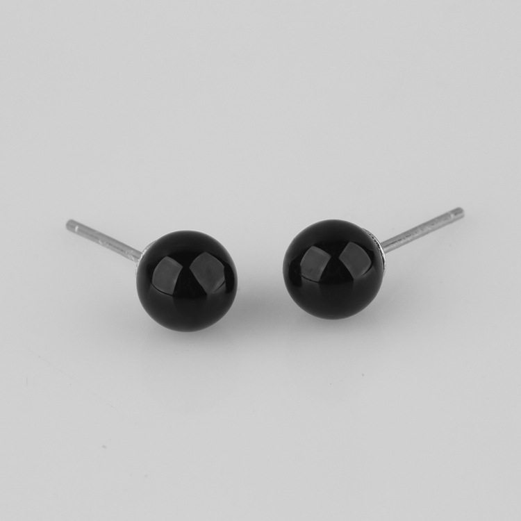 纯银《麻雀》周冬雨徐碧城同款天然黑玛瑙欧美款小圆珠圆球耳钉环 - 素言纯银原创手工坊