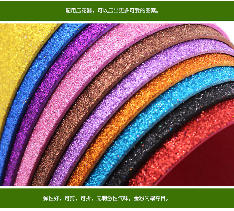 2MM厚A4带金粉EVA片材料 闪光亮光海绵纸泡沫纸 幼儿园手工海棉纸