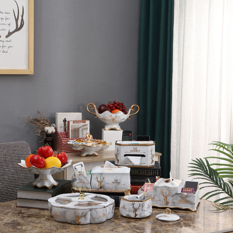 欧式家居客厅茶几装饰树脂水果盘奢华干果盘婚庆礼品摆件 - 华山论剑居