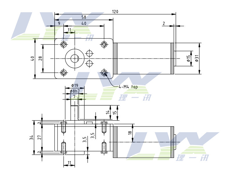 12V24V 30rpm机器人履带减速电机 GW31ZY蜗轮蜗杆减速电机大扭矩 - 南京理一讯