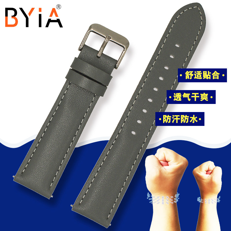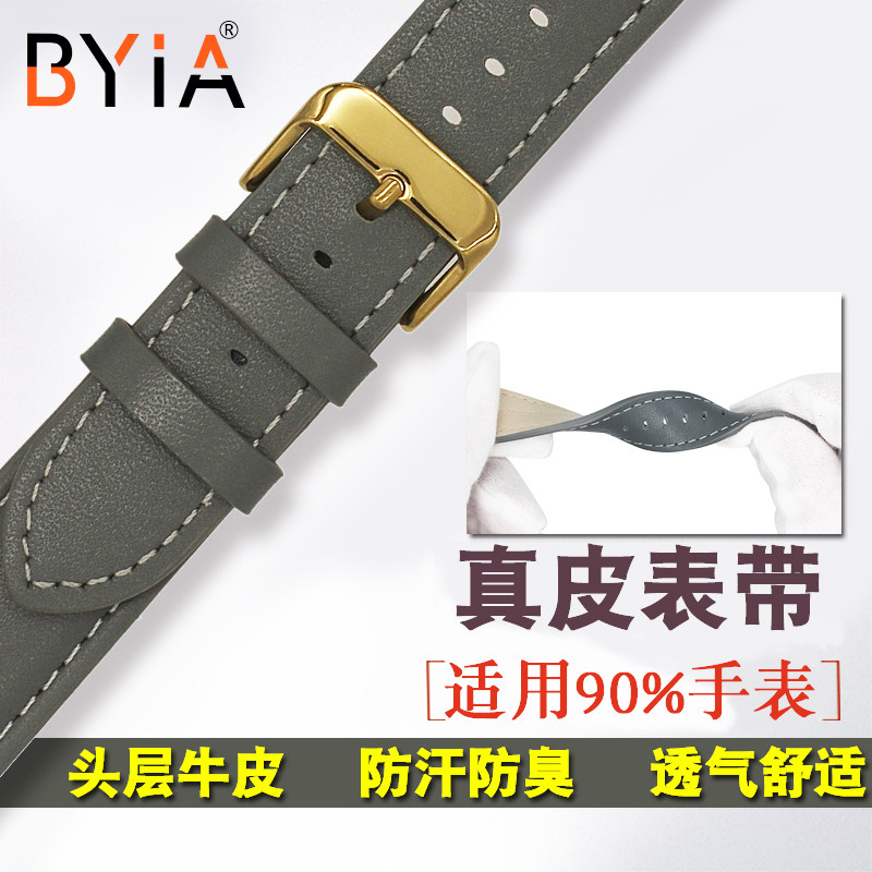 柒个我同款 灰色真皮手表带柔软防水 男女皮表链13 15 17 19 20mm - BYIA表带企业店