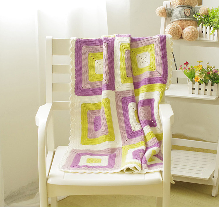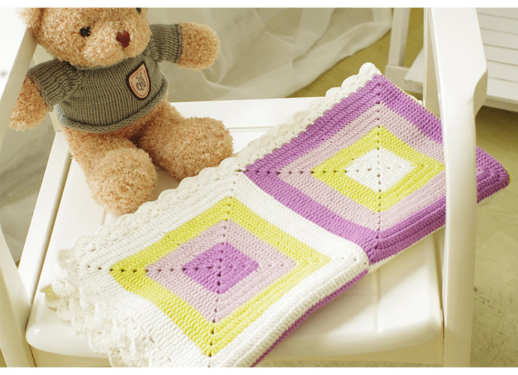 明月手作钩针方形拼色婴儿毯盖毯空调毯亲肤棉线diy编织教程视频 - 明月手作的编织店