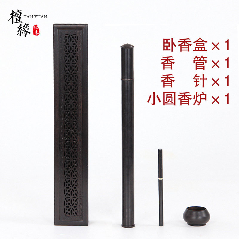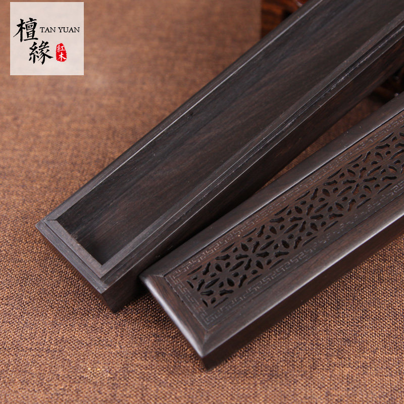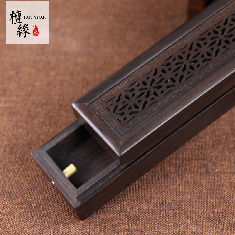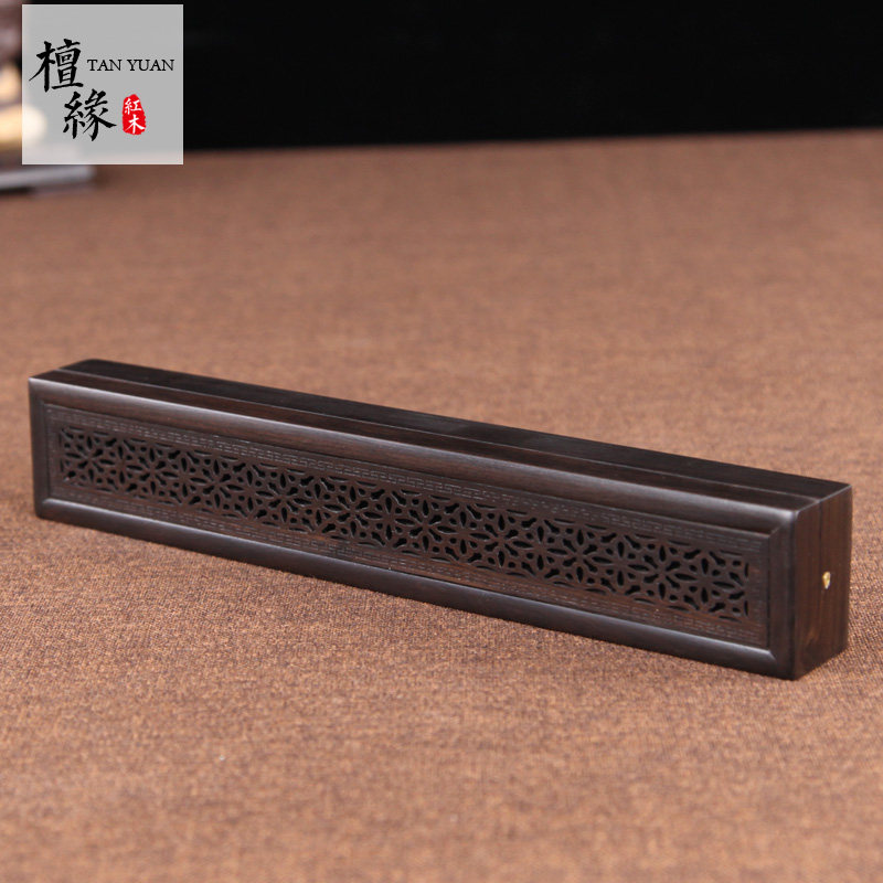 红木香盒卧香炉紫光檀雪花纹线香盒黑檀木香炉香道佛具熏香炉送礼 - 檀缘红木工艺品