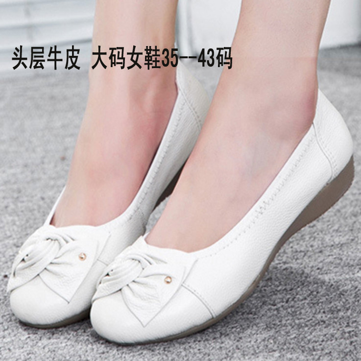 休闲真皮蝴蝶结平底单鞋414243大码女鞋软底妈妈鞋中老年浅口皮鞋 - 一双好鞋精品真皮淘宝店 两用沙滩皮凉鞋 商务休闲鞋 正装皮鞋
