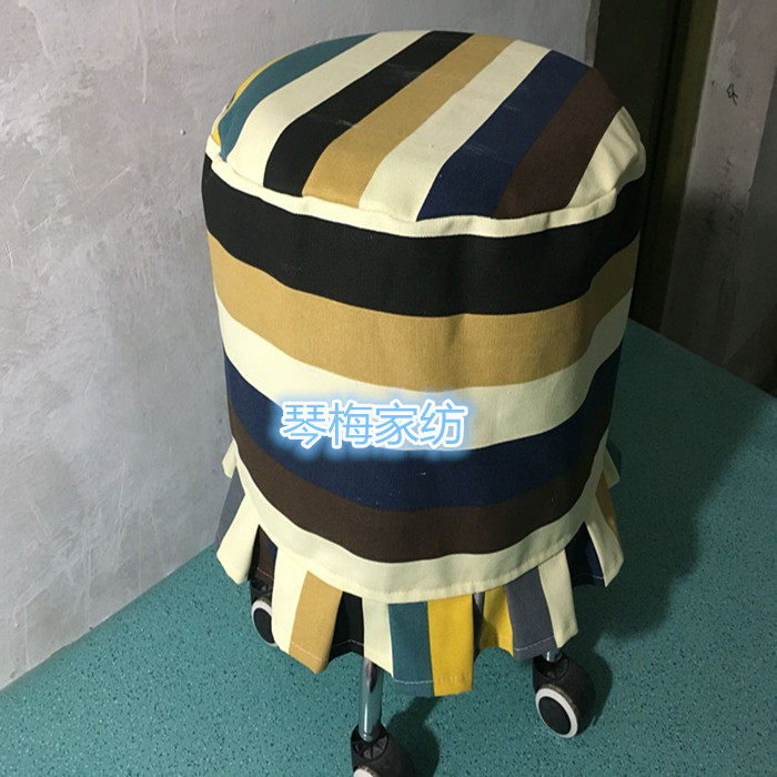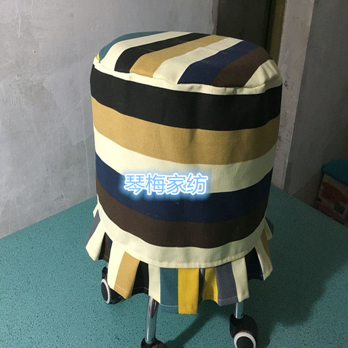 帆布印花圆形凳子套 椅子罩子 花边款布套 荷叶边椅子套 - 琴梅家纺