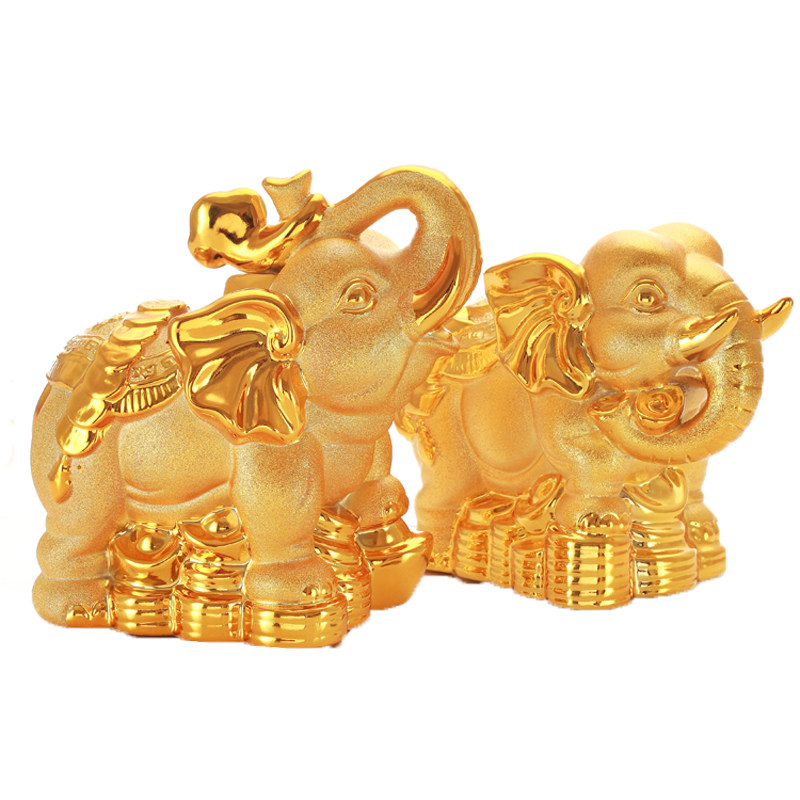 包邮陶瓷储蓄罐招财纳福大象一对摆件工艺品客厅装饰品吉祥金象 - 招财之家