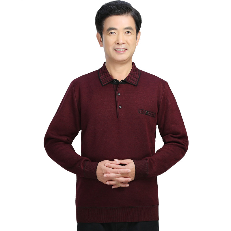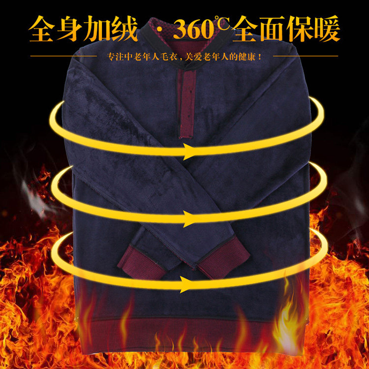 秋冬中年男士爸爸毛衣中老年人翻领套头加绒加厚打底针织羊毛线衫 - yang帅家中高端品质服装
