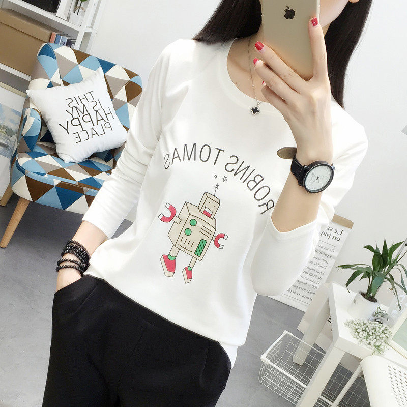 您的位置:女淘日记  >  女装  >  2019新款机器人印花长袖T恤女修身显瘦学生装圆领韩版上衣服棉质