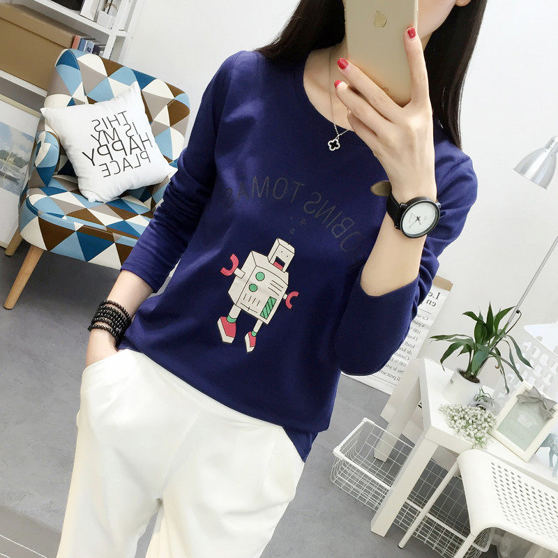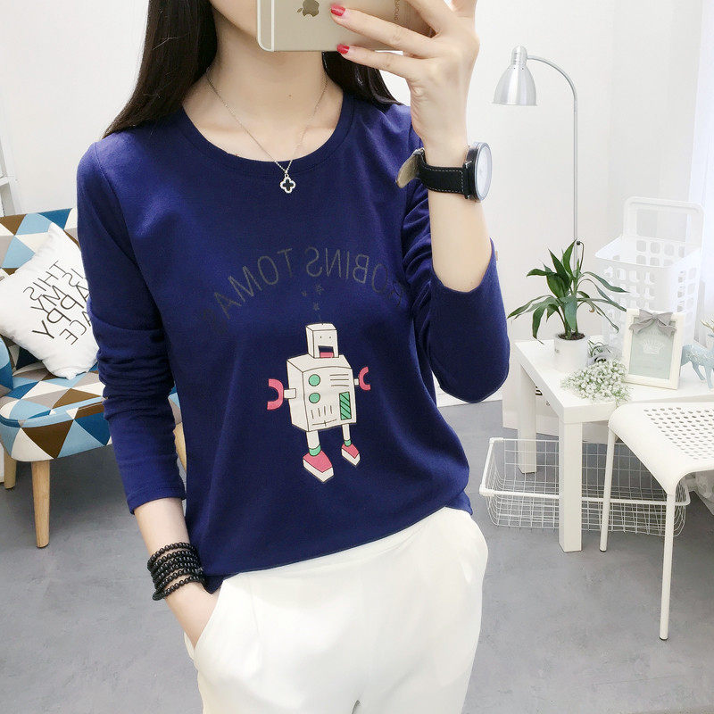 2019新款机器人印花长袖T恤女修身显瘦学生装圆领韩版上衣服棉质 - 伊诗岱女装服饰