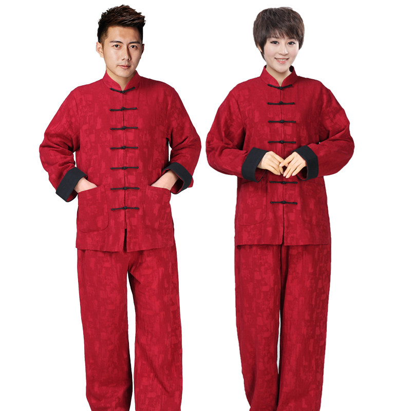 秋冬新款加厚棉麻太极服女功夫武术服比赛表演服唐装太极拳服装男 - 太极服真正的厂家