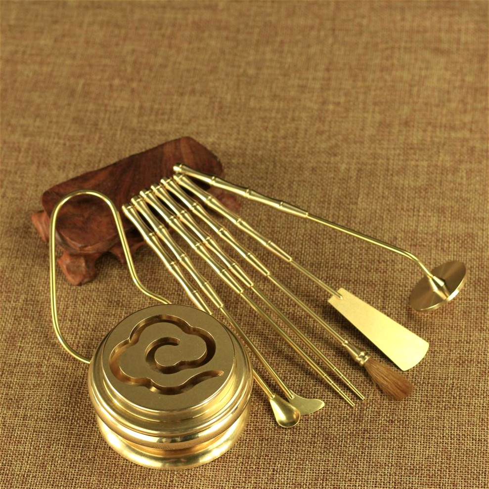 香道用品七件套 纯铜香篆炉套装 香篆香炉 打拓打篆沉香粉檀香炉 - 佛缘阁批发中心
