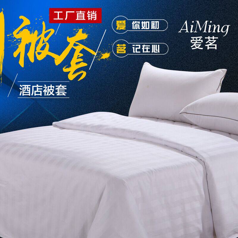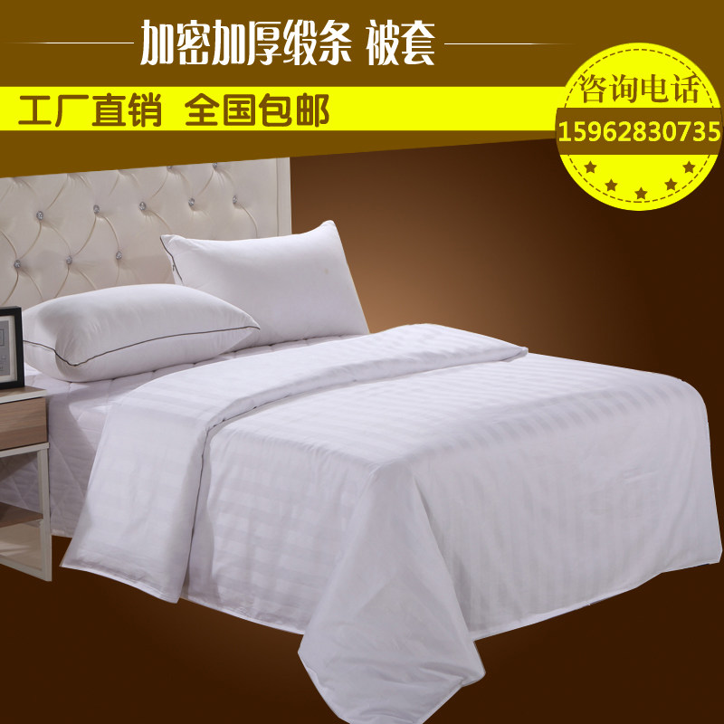 宾馆纯棉被套酒店床上用品 全棉涤棉加密J抗皱纯白色缎条 旅馆被 - 凡兰优品店1