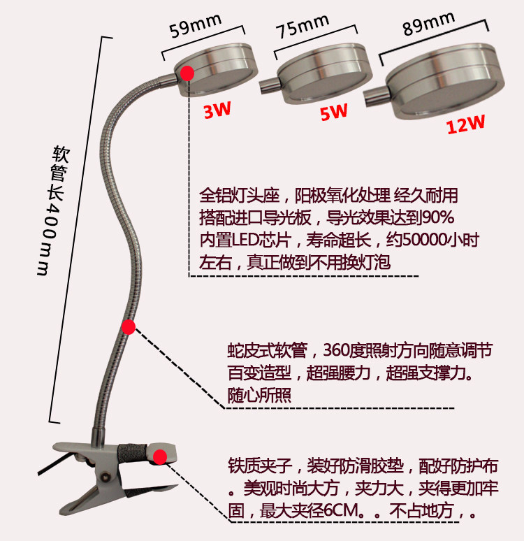 便携单光护眼书桌台灯LED软管万向化妆灯夹式通用灯12W超亮大功率 - 诺思LED灯饰