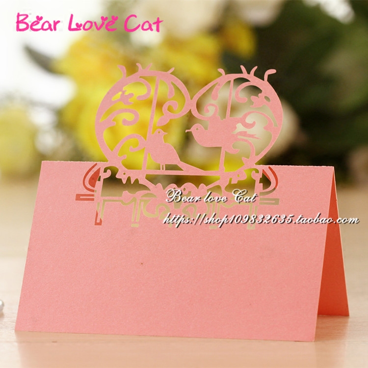 婚庆结婚桌牌婚宴桌卡台卡婚礼创意镂空爱情鸟卡席位卡座位卡50张 - Bear love Cat