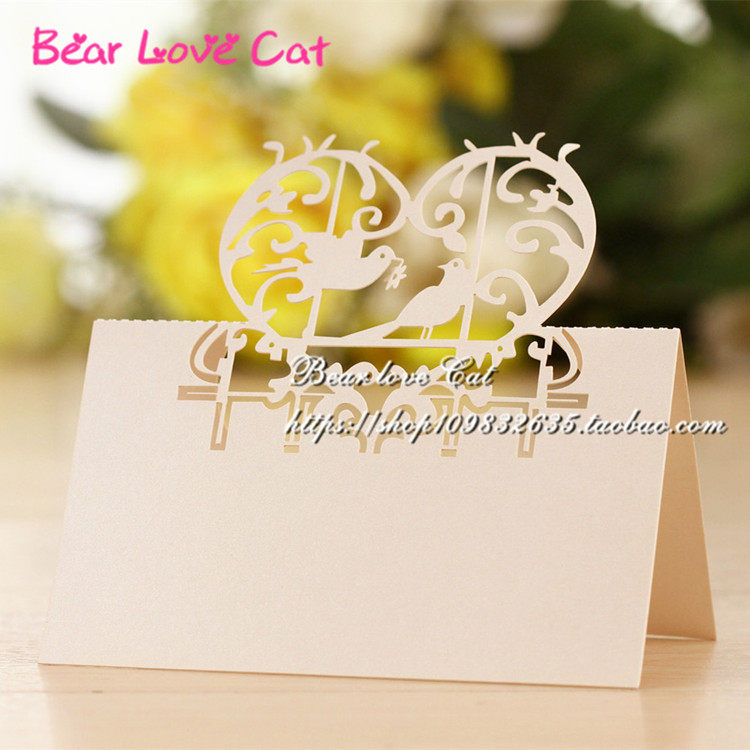 婚庆结婚桌牌婚宴桌卡台卡婚礼创意镂空爱情鸟卡席位卡座位卡50张