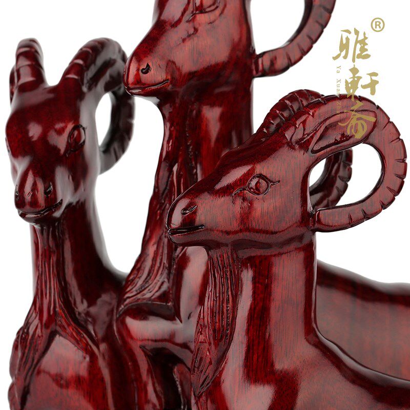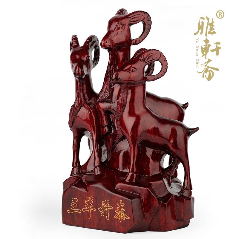 速发红木雕刻工艺品 实客质三开泰4肖羊家居木厅玄关摆件生0摆设 - 百弘优选