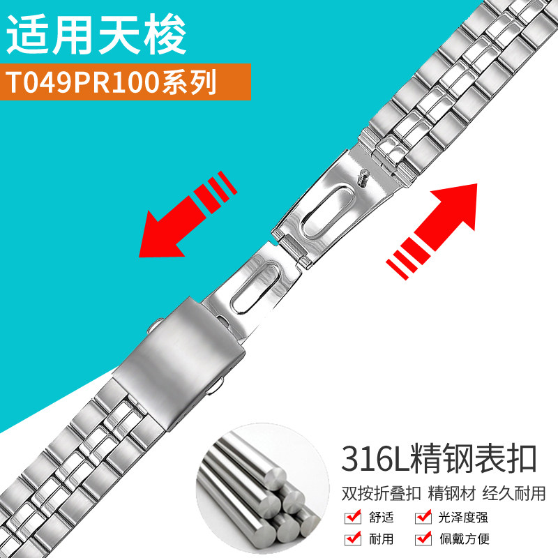 征途1853钢表带 代用天梭PR100系列T049407A/410A男款钢带钢带 - zntu征途旗舰店