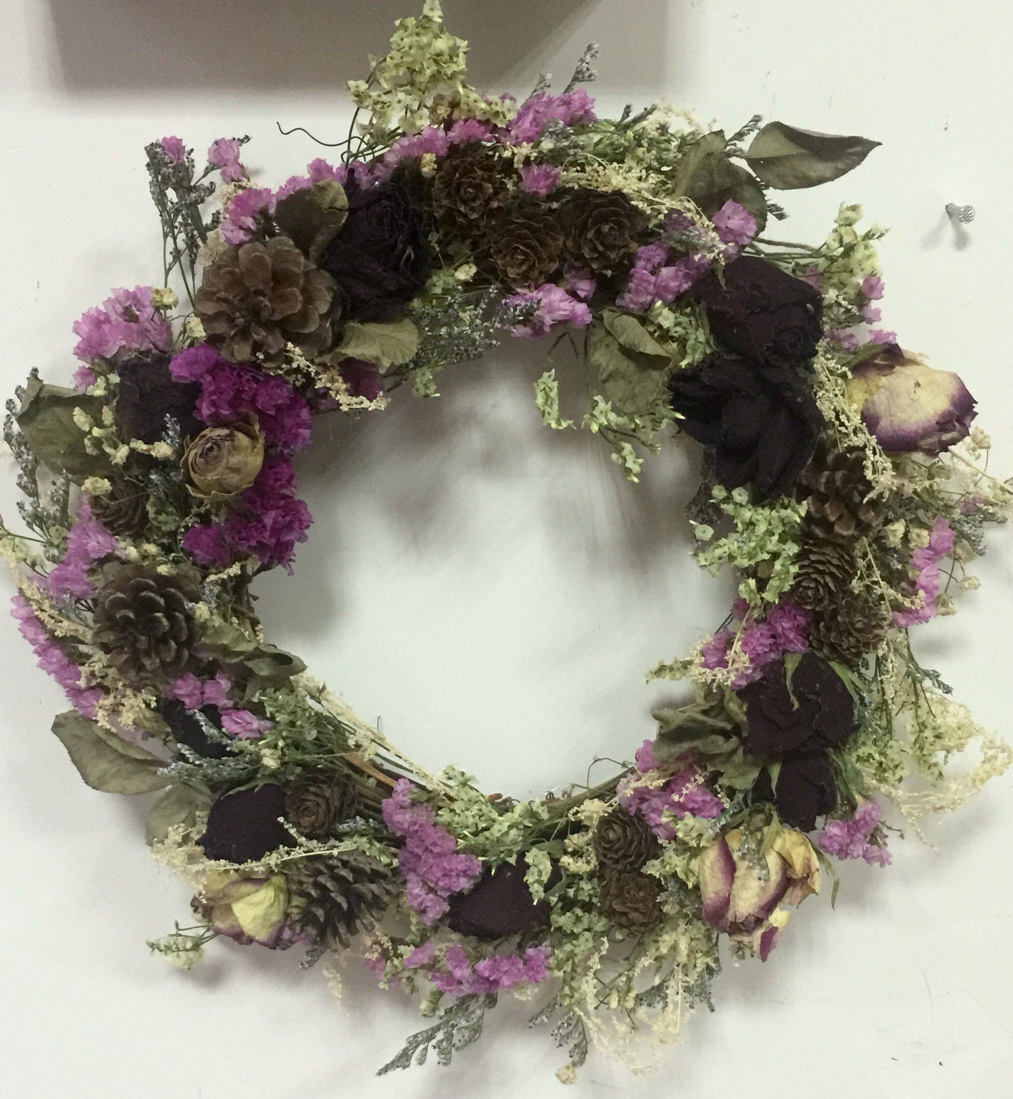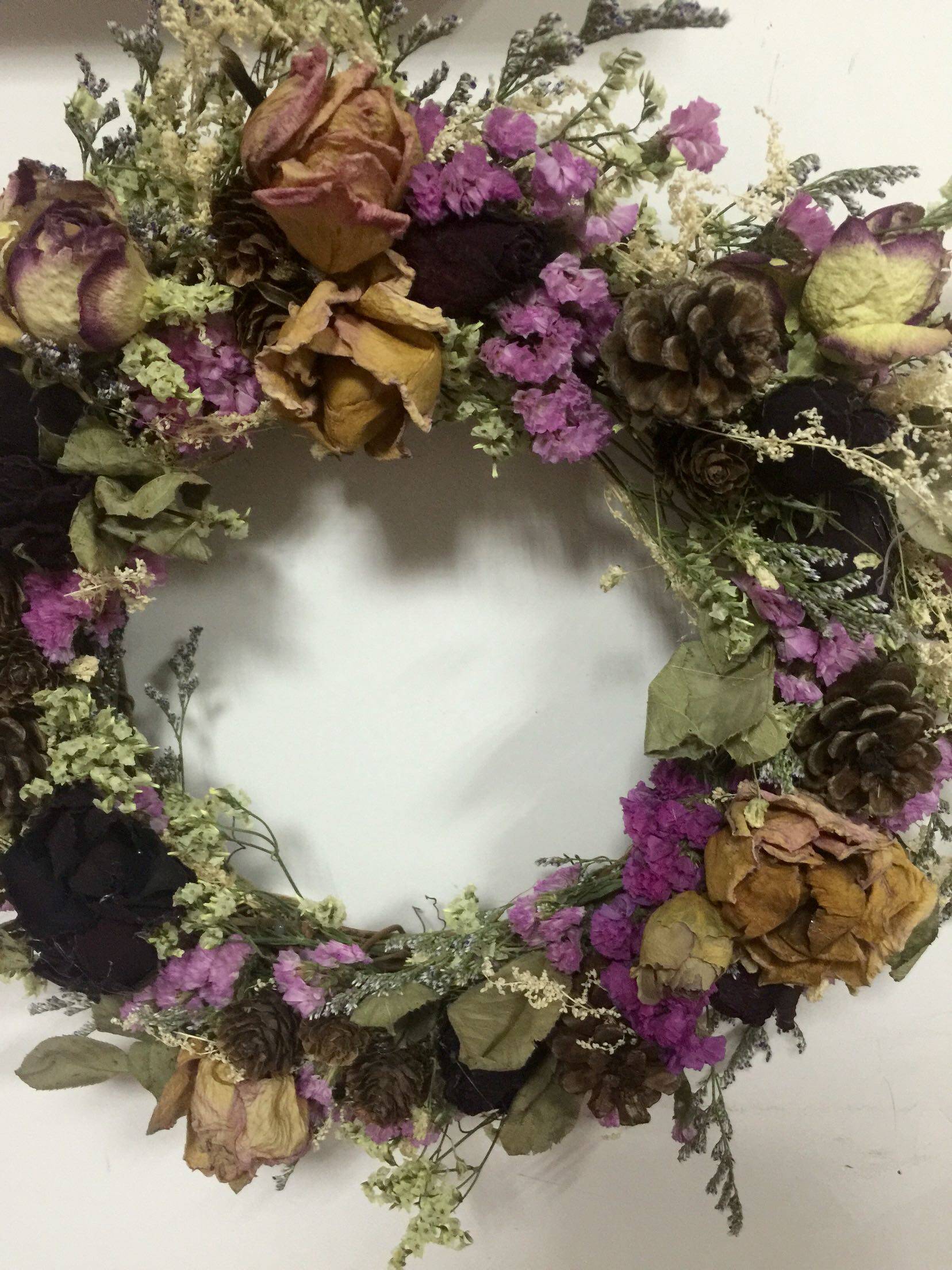 天然玫瑰黑美人香槟粉紫粉勿忘我干花干藤圈花环壁饰原268大号 - 阁古稽商城的小店71