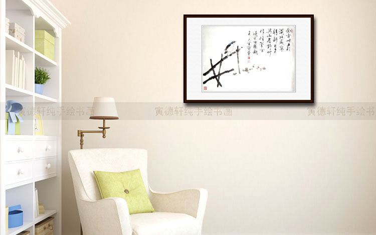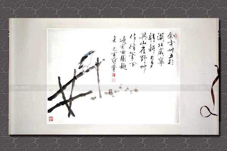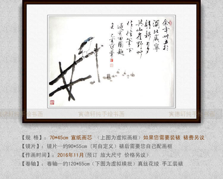 纯手绘国画名人字画仿范曾横幅花鸟挂画心水墨写意青鸟兰顶小鸟图 - 寅德轩书画手绘