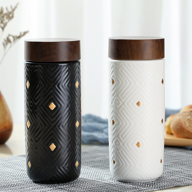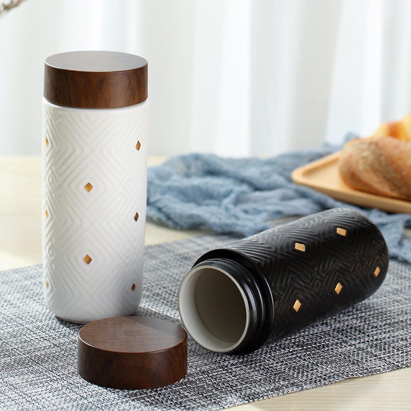 乾唐轩活瓷杯鎏金奇迹木纹盖随身杯双层330ml个性创意水杯 - 乾唐轩活瓷尊轩店