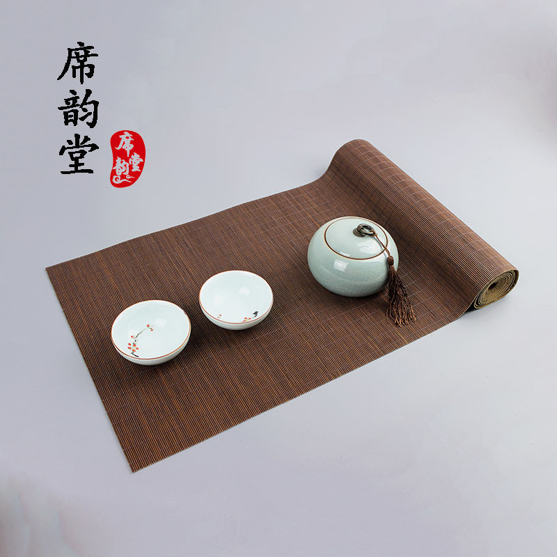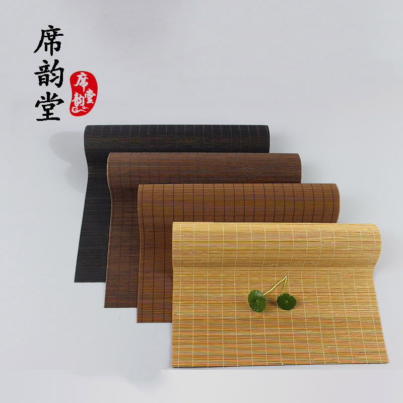 原木色茶席深色茶垫禅意茶席竹茶帘竹席茶席茶盘垫竹垫餐垫桌旗 - 席韵堂