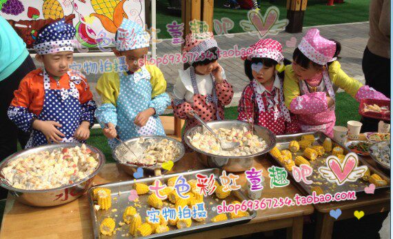 儿童围裙 幼儿围裙 韩版画画衣 吃饭衣罩衣 围裙+袖套+头巾3-12岁 - 七色彩虹童趣吧