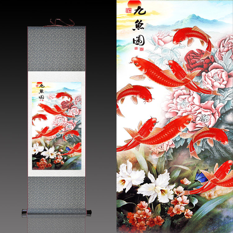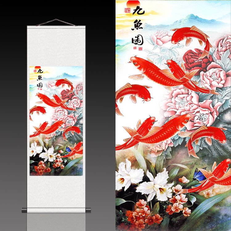 您的位置:女淘日记  >  居家  >  红红火火红鲤鱼工笔九鱼图客厅理发店装饰卷轴画丝绸壁画鸿运九鱼