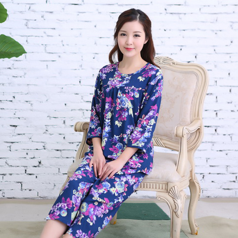 您的位置:女淘日记  >  内衣  >  女士夏纯棉绸睡衣套装中长袖中长裤绵绸人造棉家居服月子服空调服