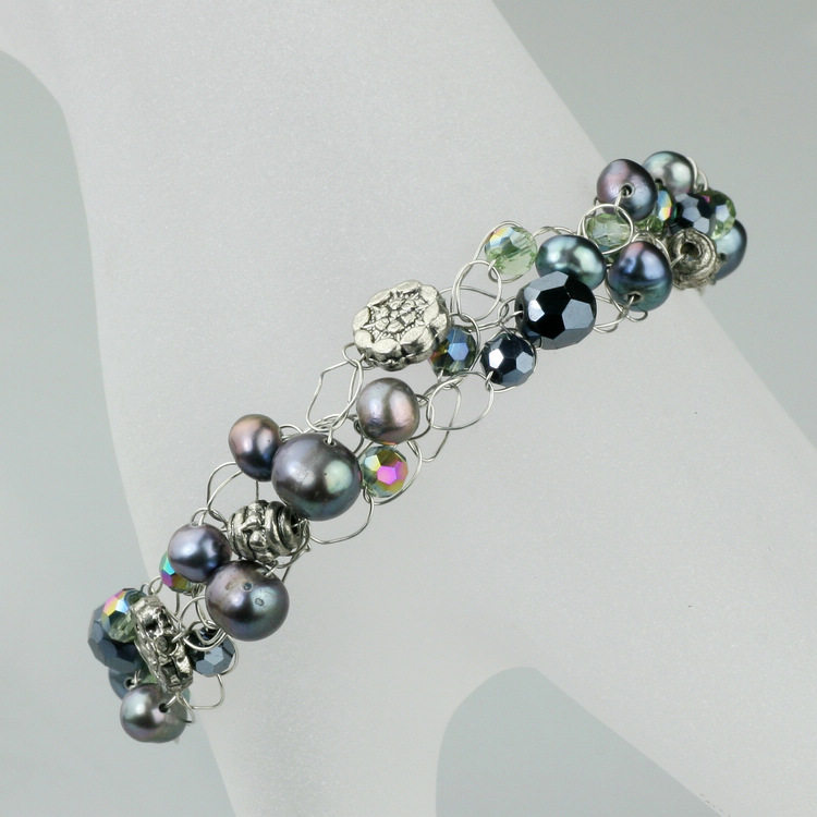 素元 天然正品黑珍珠水晶韩版手链夸张多层复古宽时尚手镯饰品女 - 素元原创首饰 设计师店铺 高性价比