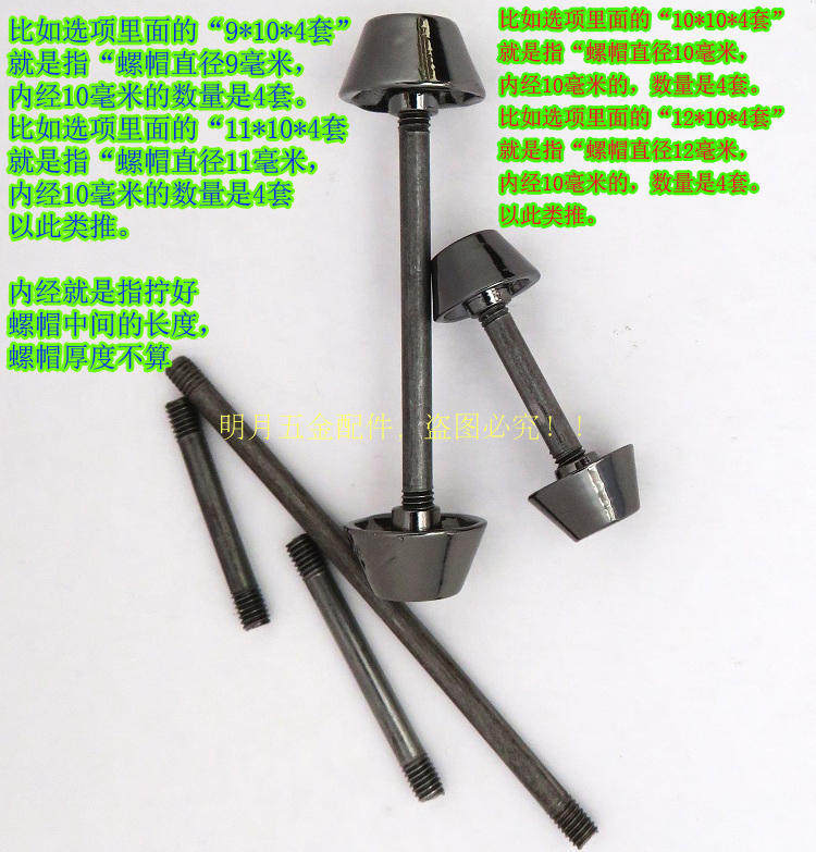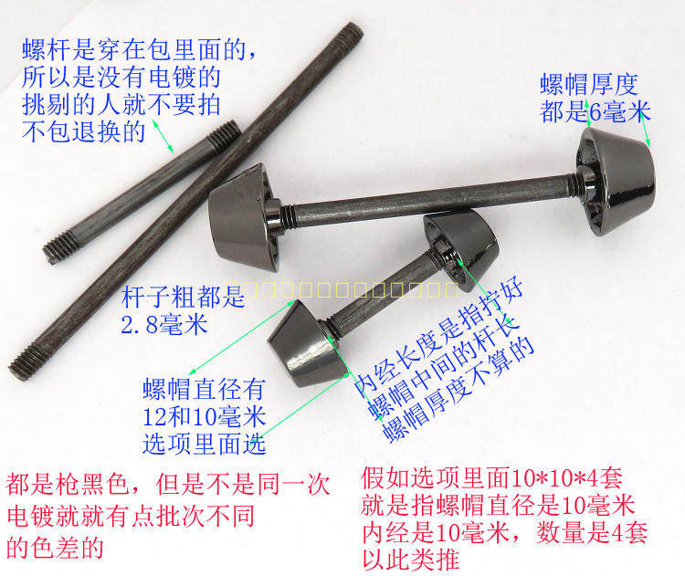 枪黑色包DIY饰品配件两端螺帽中间螺丝杆子圆头形水桶形钉子五金 - 皮具五金配件店