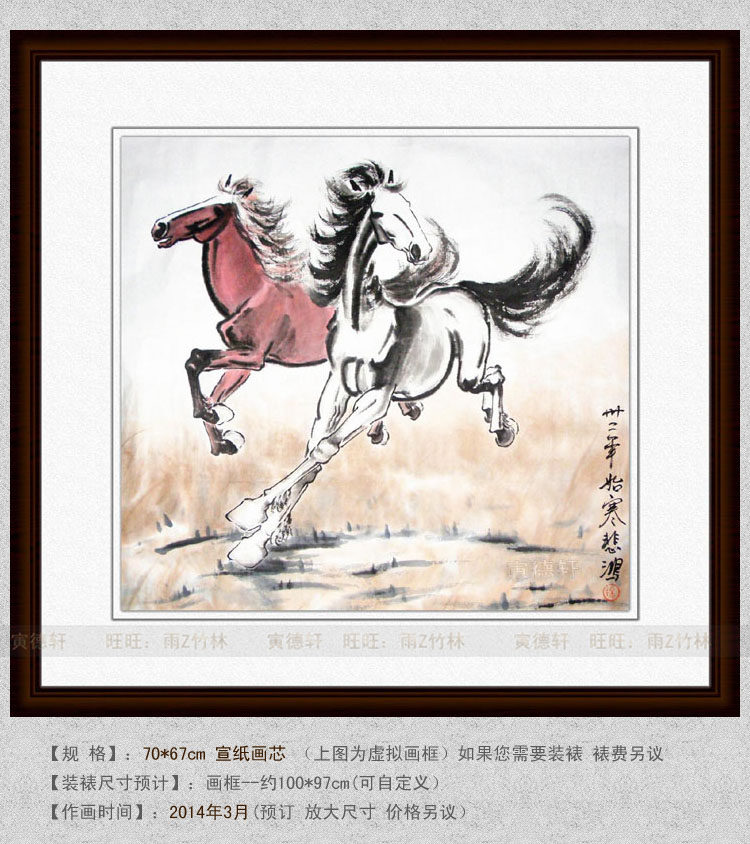 纯手绘国画仿名人字画名家徐悲鸿中堂斗方双骏图奔马图马到成功 - 寅德轩书画手绘